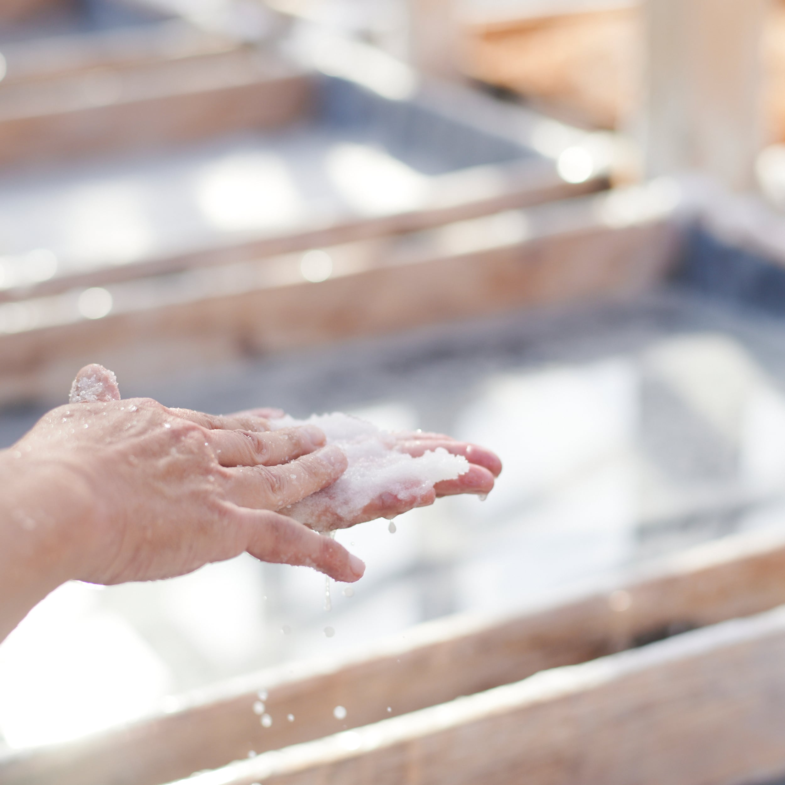 塩二郎が責任を持って同じ場所で専属スタッフとともに日々管理し、数ヶ月かけて丁寧に仕上げた完全天日塩。どんな料理にも深みと旨みを与え、家庭料理をワンランク上の味わいへと導きます。