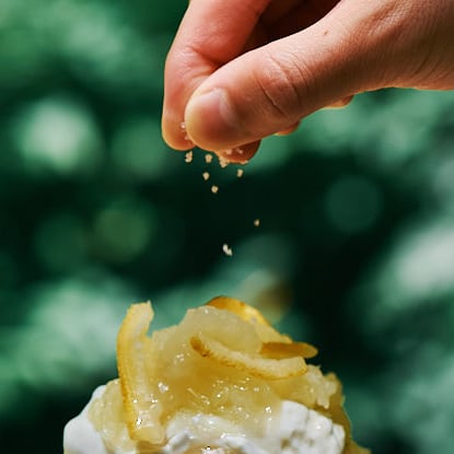 高知・田野町で生まれた「田野屋塩二郎の完全天日塩」。火を使わず、太陽の熱と潮風、そして手の感覚だけで数千種類を作り分けるフルカスタムオーダーでの塩作りは、田野屋塩二郎にしかできない職人技です。完全オーダーメイドの塩は、シェフ一人一人の細やかな要望に合わせて仕上げられます。